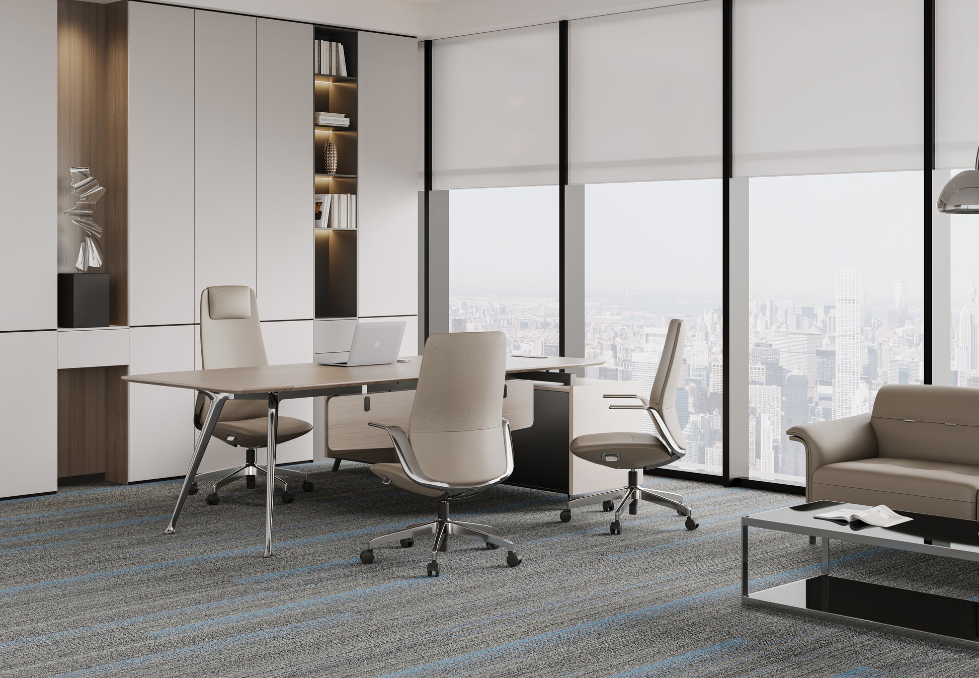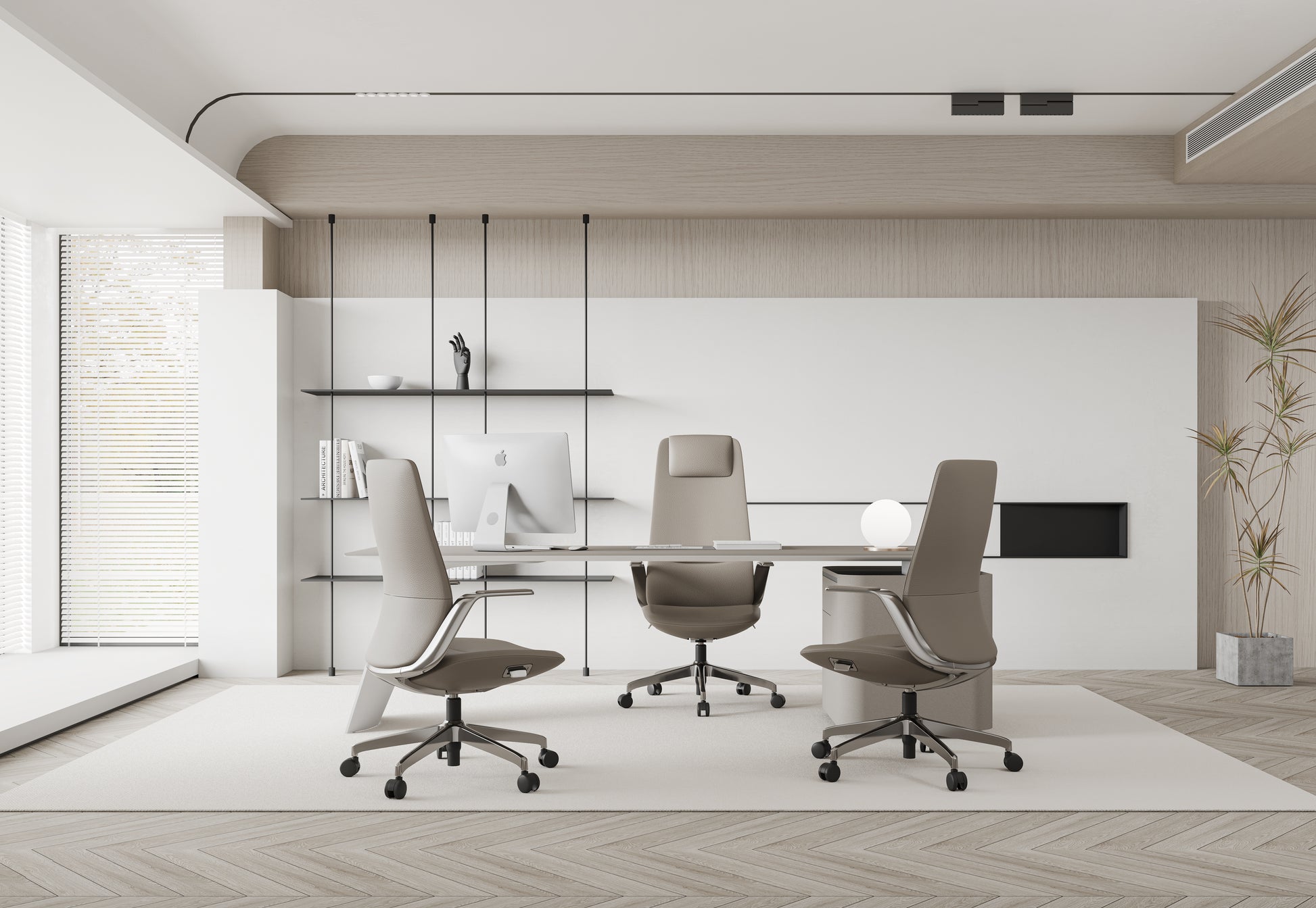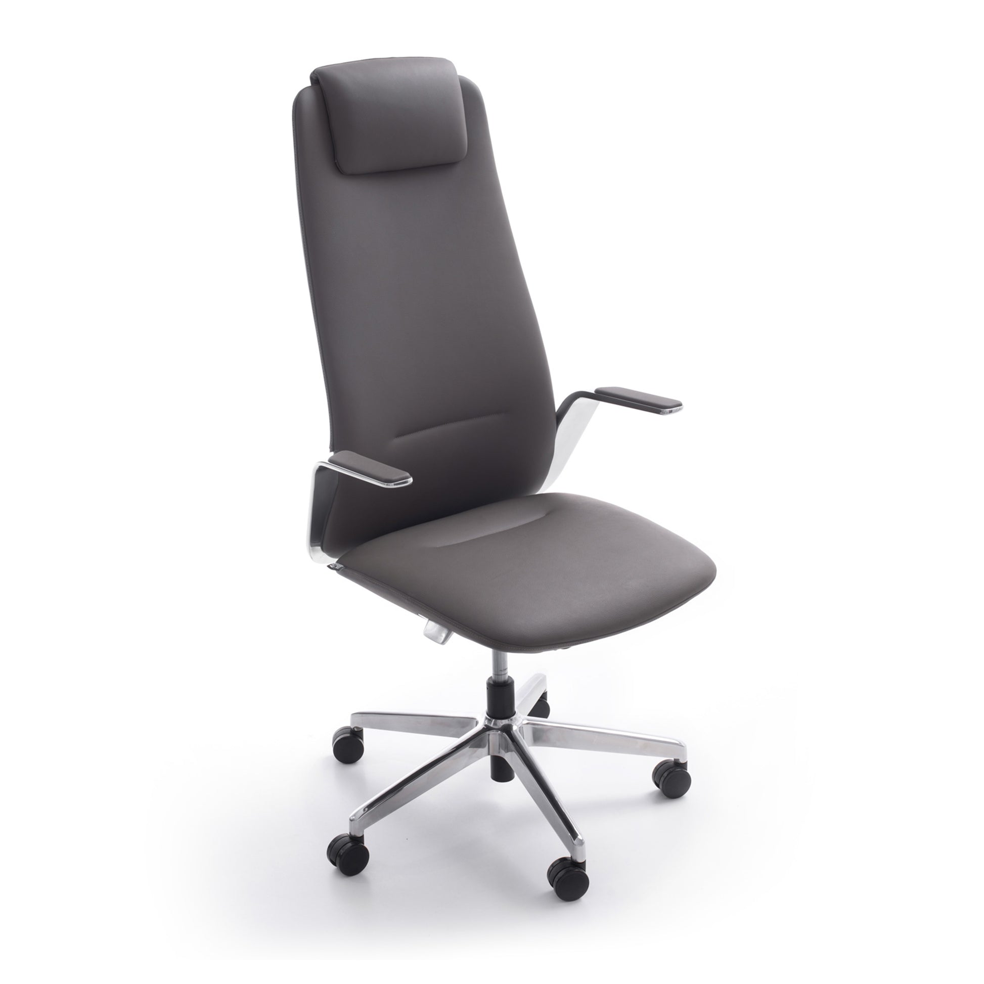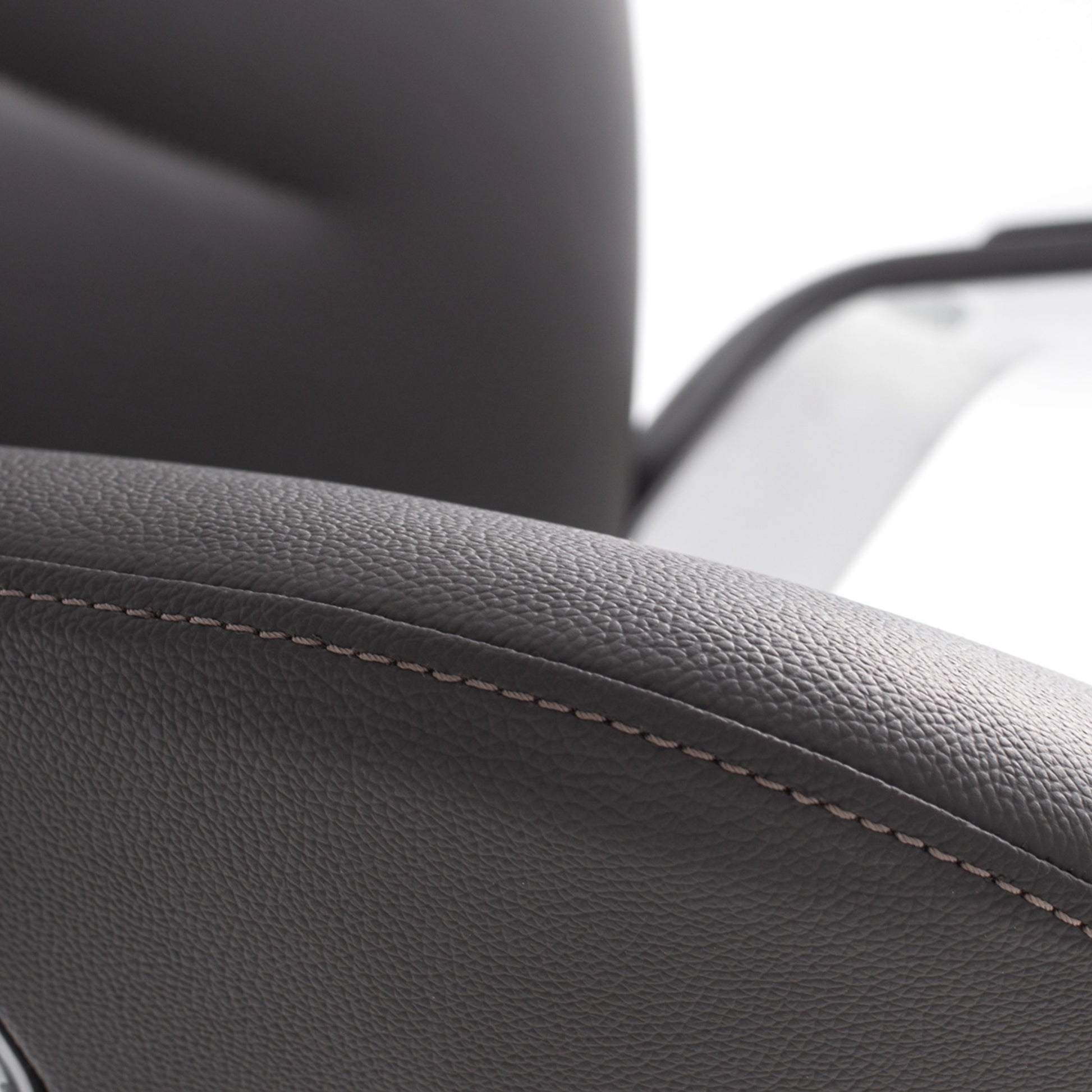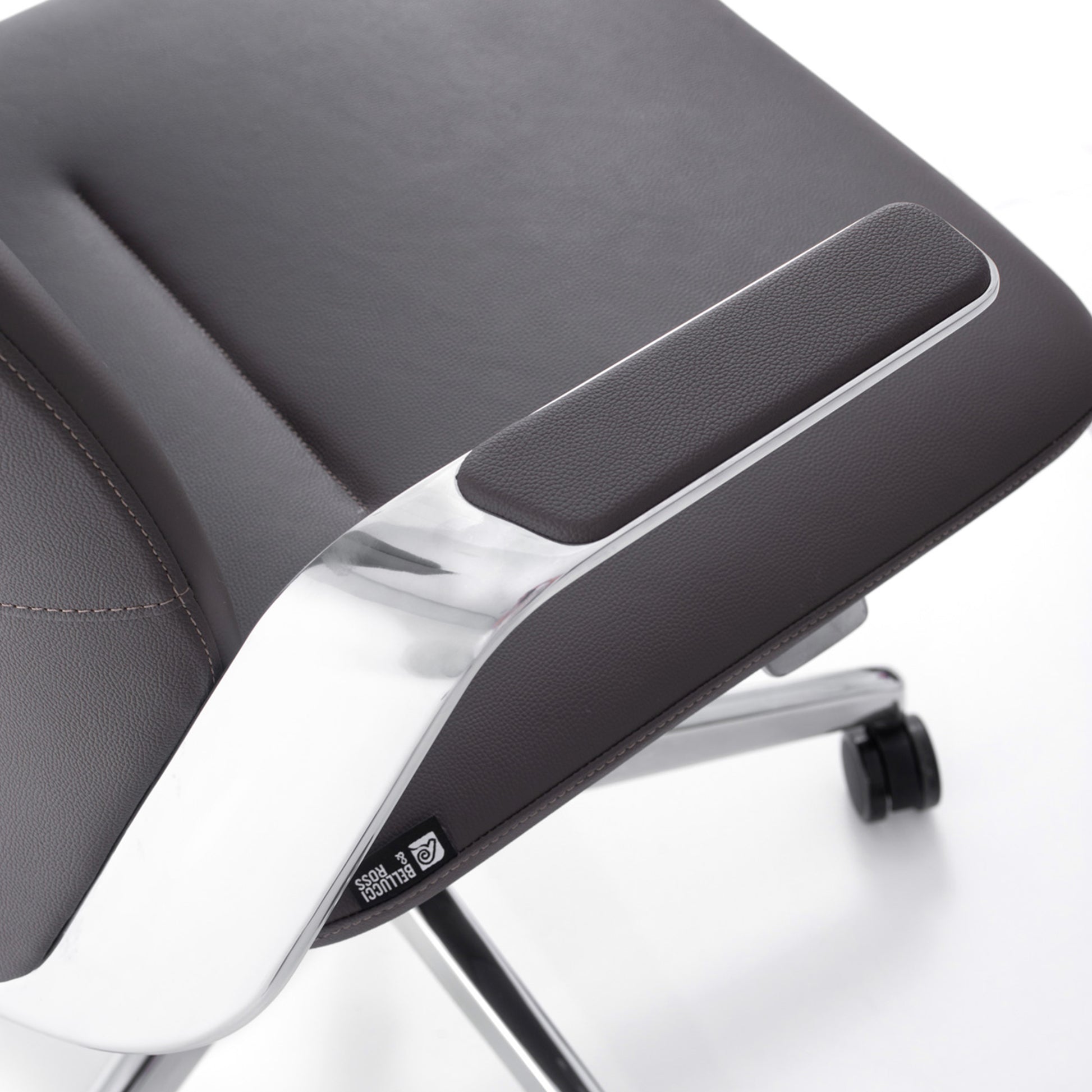3.Arm: One-piece aluminum alloy armrests with soft leather upholstery.