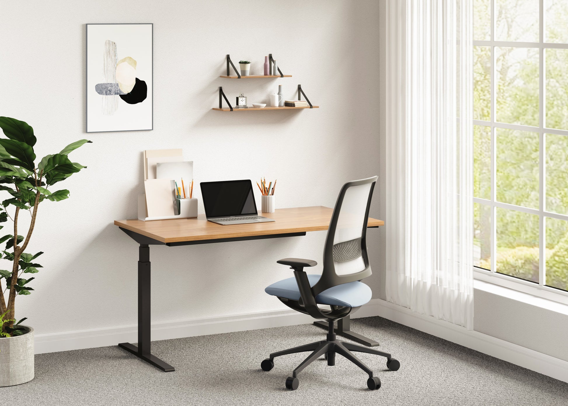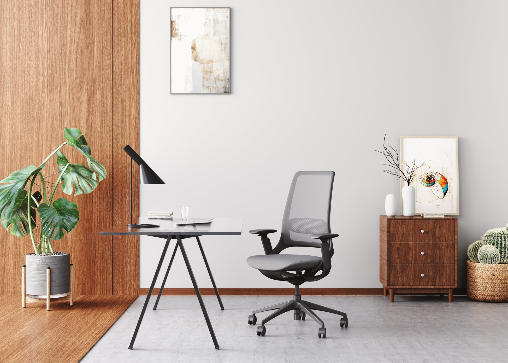 Pamja: Kornizë e lëmuar në ngjyrë gri ylli dhe dizajn pa bazament. Lehtësia dhe ndjesia shtëpiake janë elementët kryesorë të këtij dizajni. (Projektuar nga studioja gjermane e njohur ndërkombëtarisht, ITO Design)