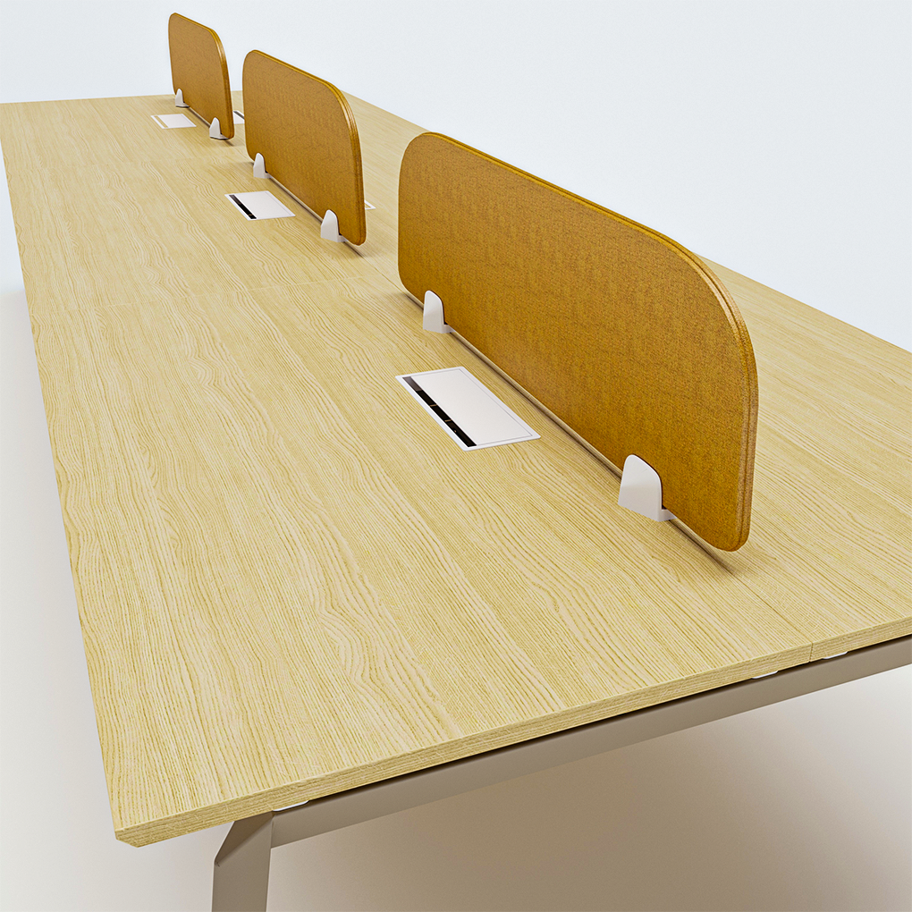 Ekran tavoline me pëlhurë: MDF 12mm i mbuluar me pëlhurë, me hapësirë 2mm në mes të ekranit, pëlhura zgjedhet vetëm nga faqja 16 (ngjyra “small pearl”), mbështetje hekuri 4mm me vida.