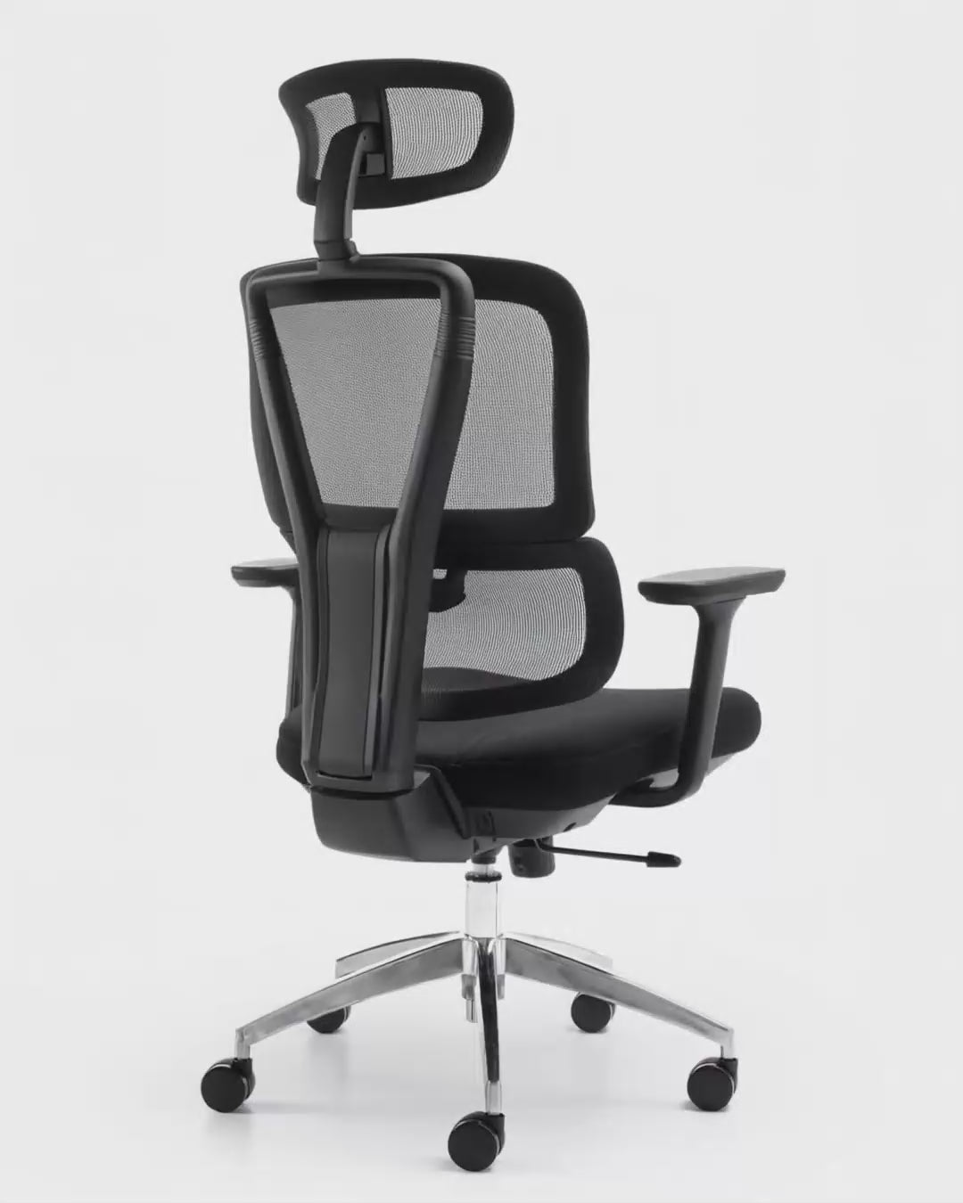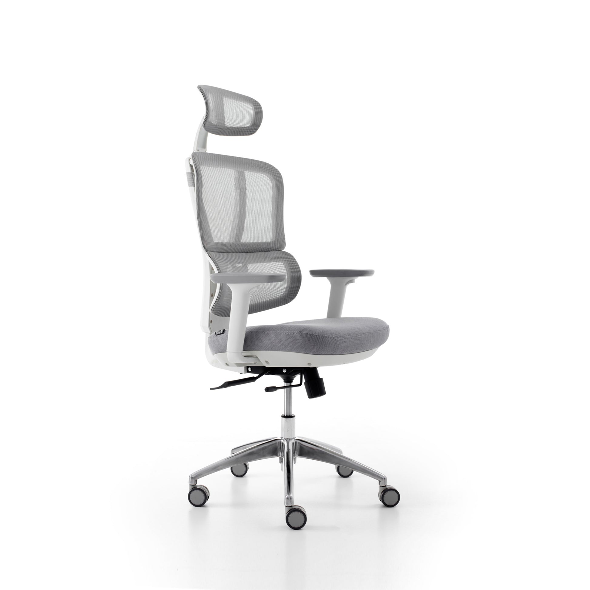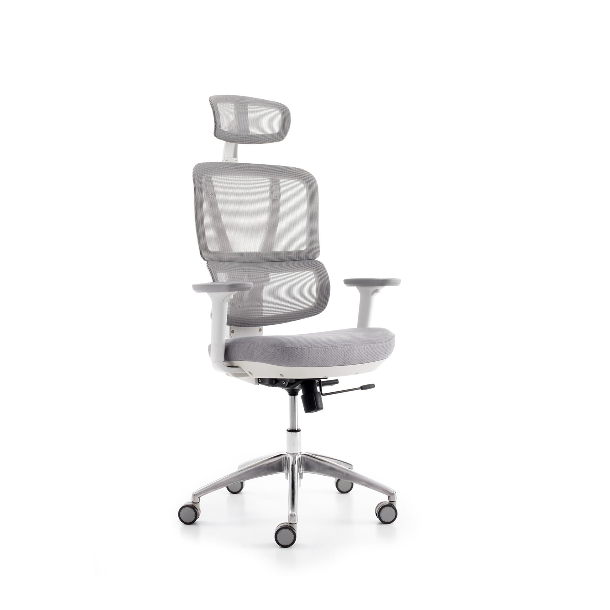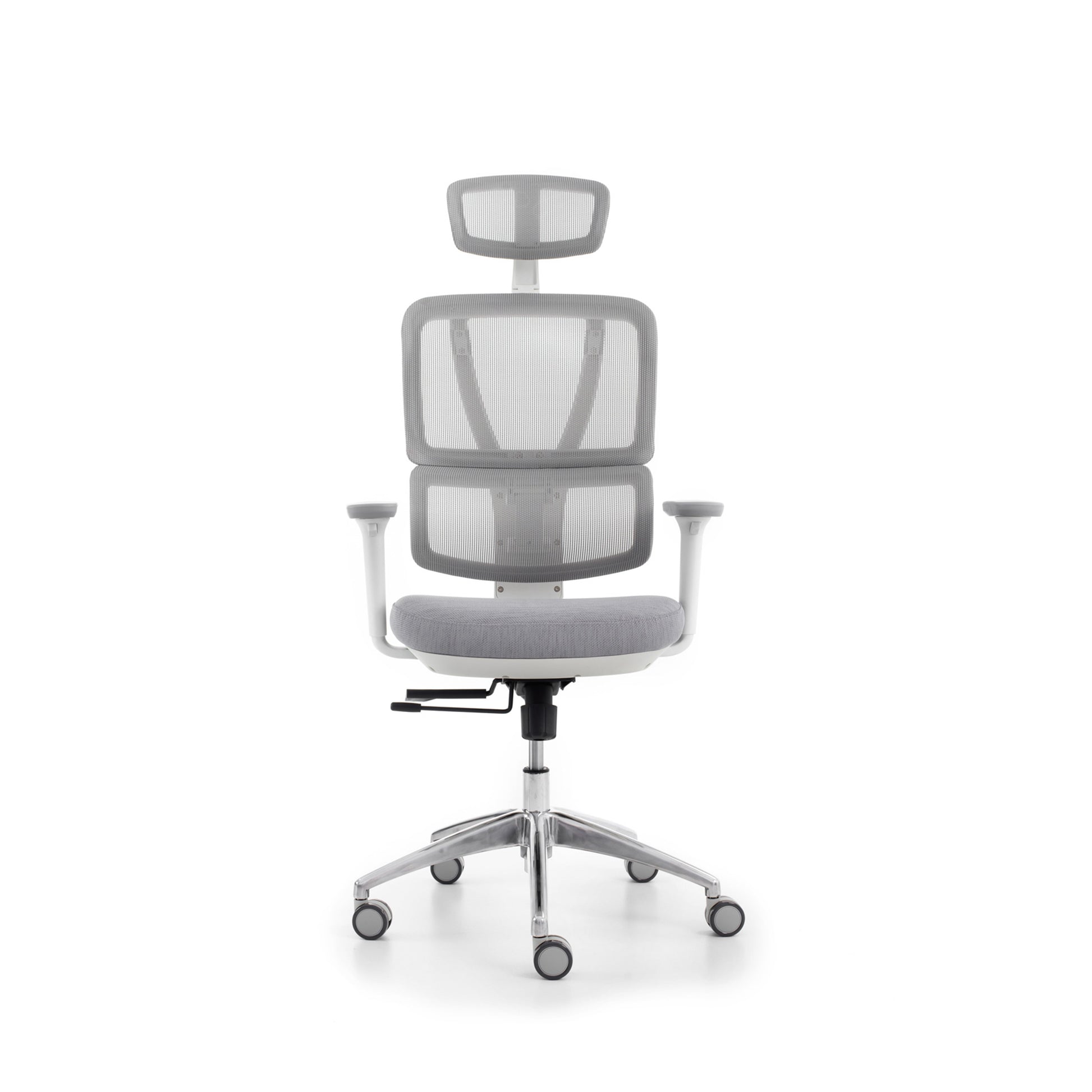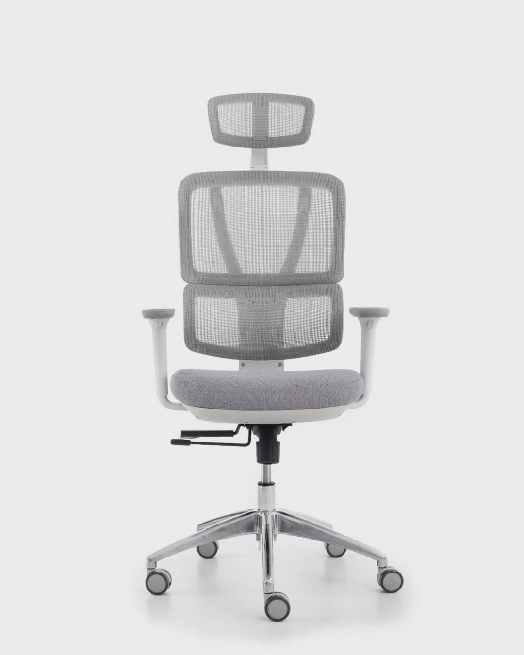 Karrige ergonomike rrjetë me mbështetëse të lartë, ngjyrë gri e hapur, certifikuar BIFMA (mbështetëse rrjetë e përmirësuar).