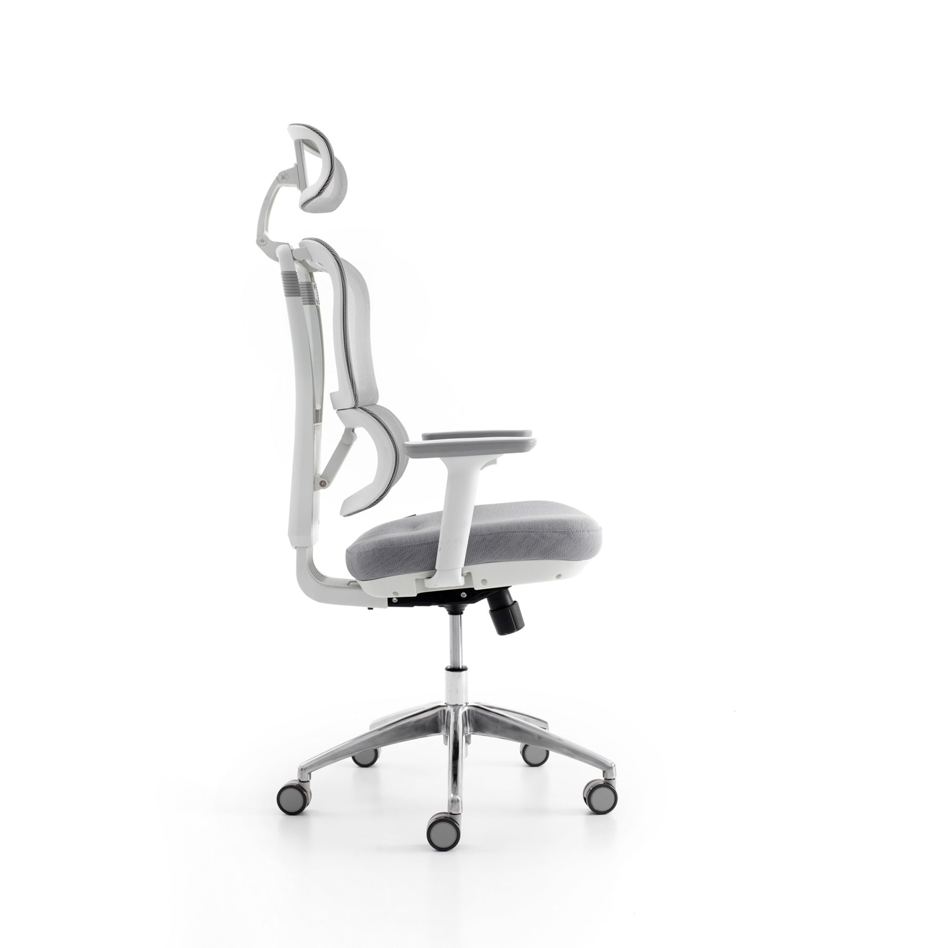 Mbështetëse shpine e rregullueshme lart-poshtë me 5 pozicione të bllokuara, me diapazon 70 mm, ngjyrë gri e hapur.